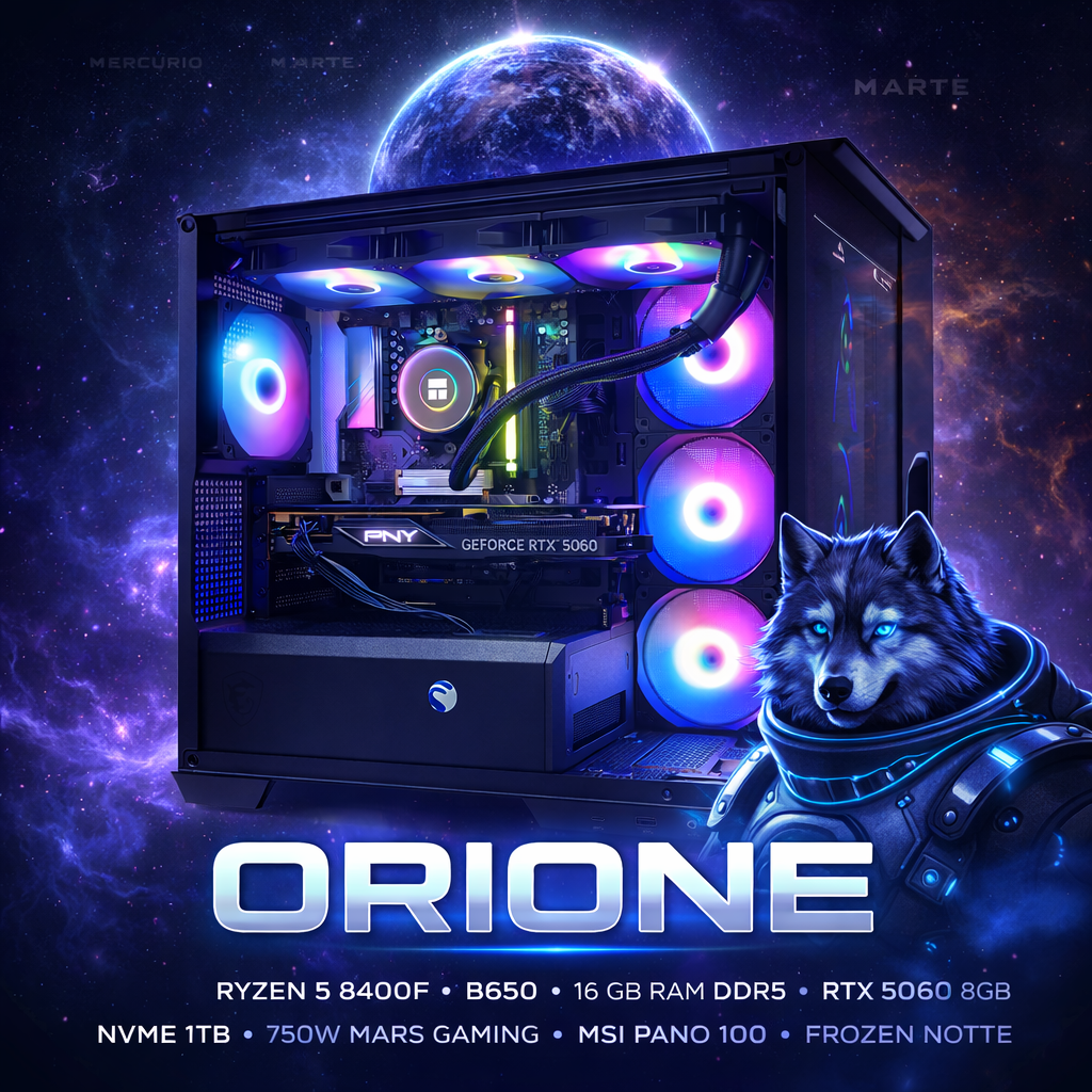 ORIONE – PC Gaming RGB | Ryzen 5 8400F • RTX 5060 • 16GB DDR5 • NVMe 1TB