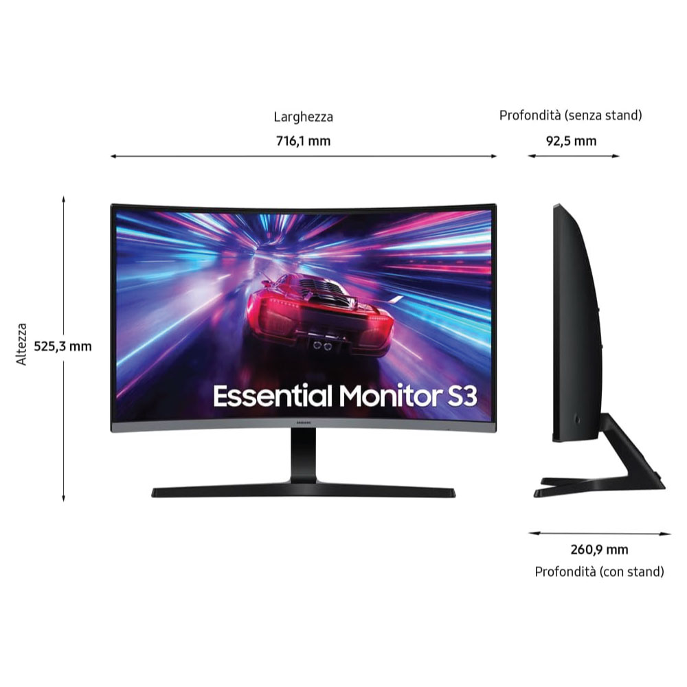 - Contenuto: 1x Samsung Monitor S39GD 32”, Include cavo di alimentazione e cavo HDMI, Dimensioni con base (LxAxP): 71,61 x 52,53 x 26,09 cm
