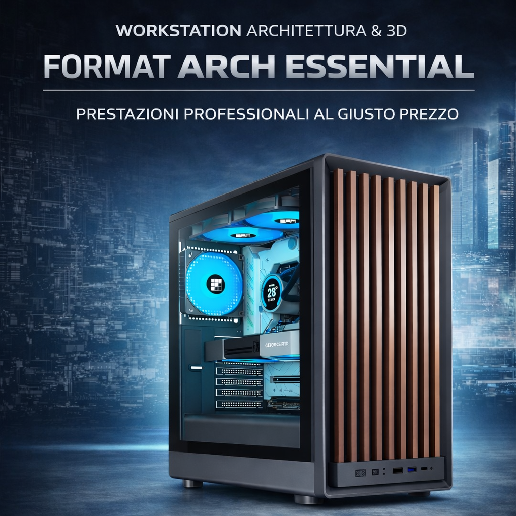 La FORMAT ARCH ESSENTIAL è una workstation progettata per architetti, studi tecnici e professionisti della modellazione 3D che desiderano una configurazione essenziale ma affidabile.